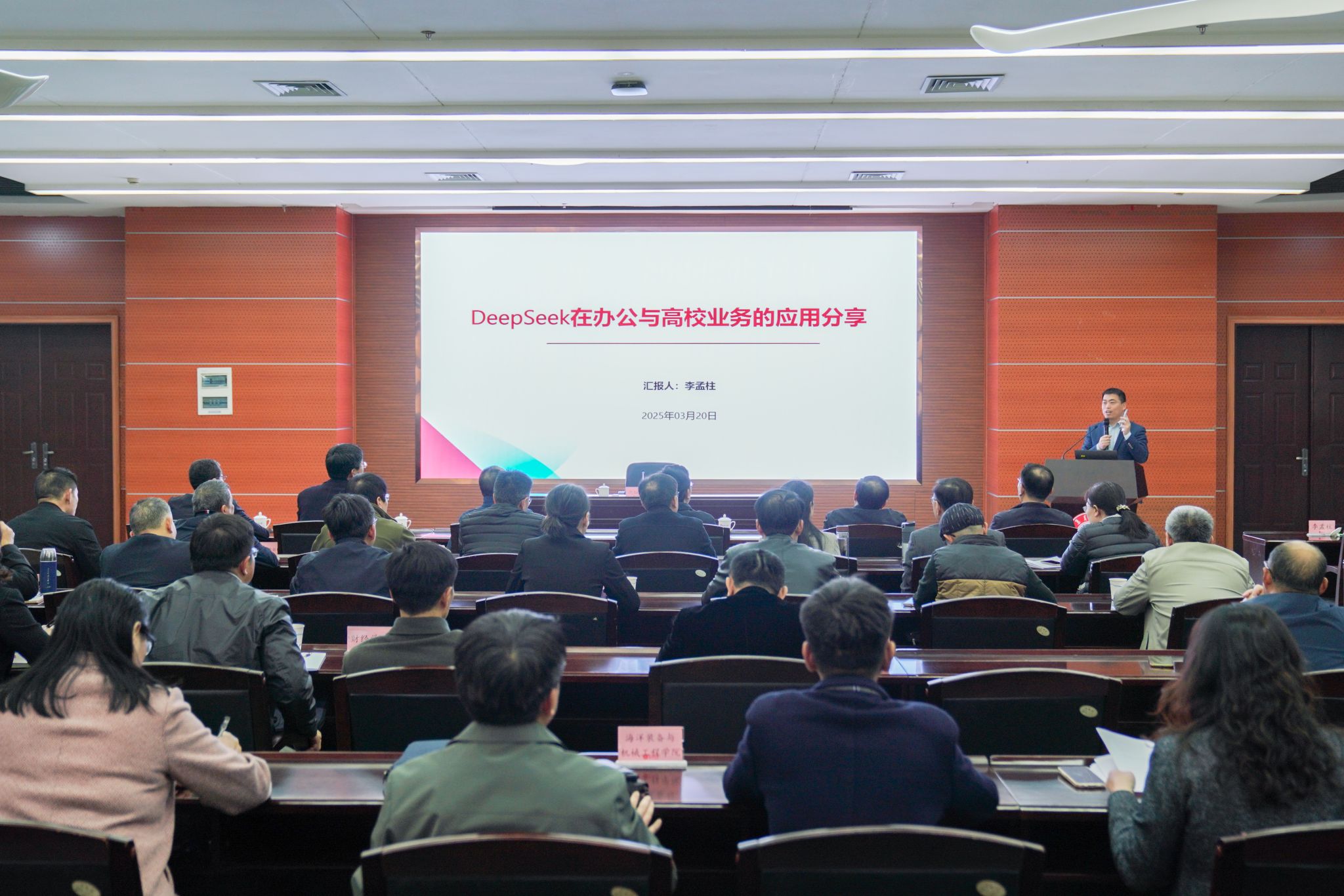 学校网络安全与信息化办公室负责人围绕DeepSeek在我校的实践应用,就“集大爱问”建设情况作交流发言。