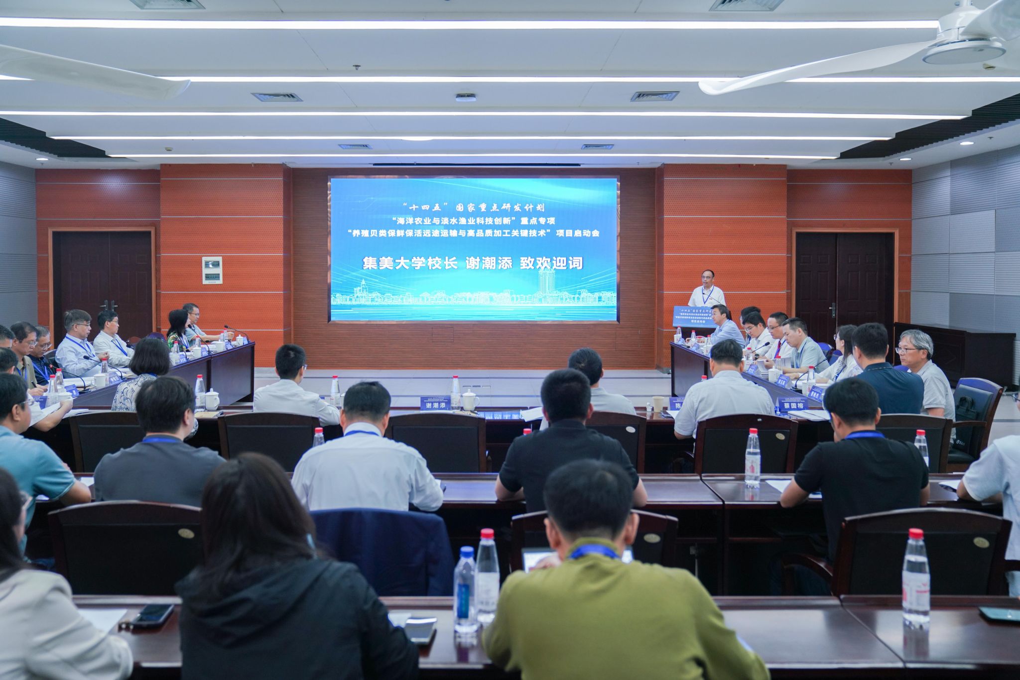 4月21日,由我校牵头的国家重点研发计划“海洋农业与淡水渔业科技创新”重点专项“养殖贝类保鲜保活远途运输与高品质加工关键技术”项目启动会召开。校长谢潮添出席并致辞,农业农村部渔业渔政管理局、福建省科学技术厅、厦门市科学技术局有关领导,项目负责人、课题负责人及项目骨干等参加会议。