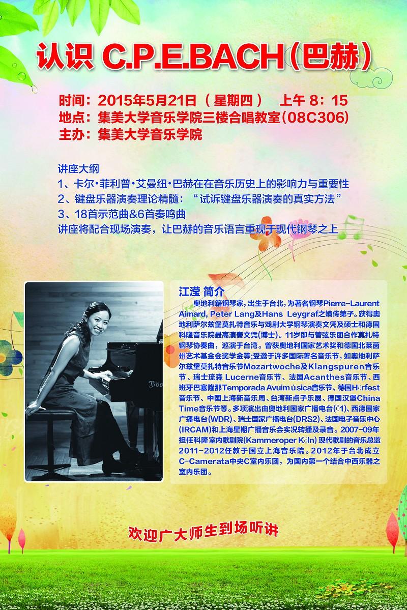 讲座将配合现场演奏,让巴赫的音乐语言重现于现代钢琴之上